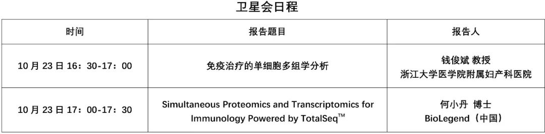 除了日常的展臺(tái)活動(dòng),我們誠(chéng)摯的邀請(qǐng)您10月23日下午16:30-17:30在腫瘤免疫與腫瘤免疫治療第七分會(huì)場(chǎng)參加我們的衛(wèi)星會(huì),達(dá)科為&BioLegend將為大家?guī)?lái)主題為“TotalSeq 技術(shù)助力免疫學(xué)研究及免疫治療的單細(xì)胞多組學(xué)分析”的衛(wèi)星會(huì),以下是會(huì)議日程安排,歡迎您準(zhǔn)時(shí)蒞臨,現(xiàn)場(chǎng)還有精美禮品,先到先得哦!