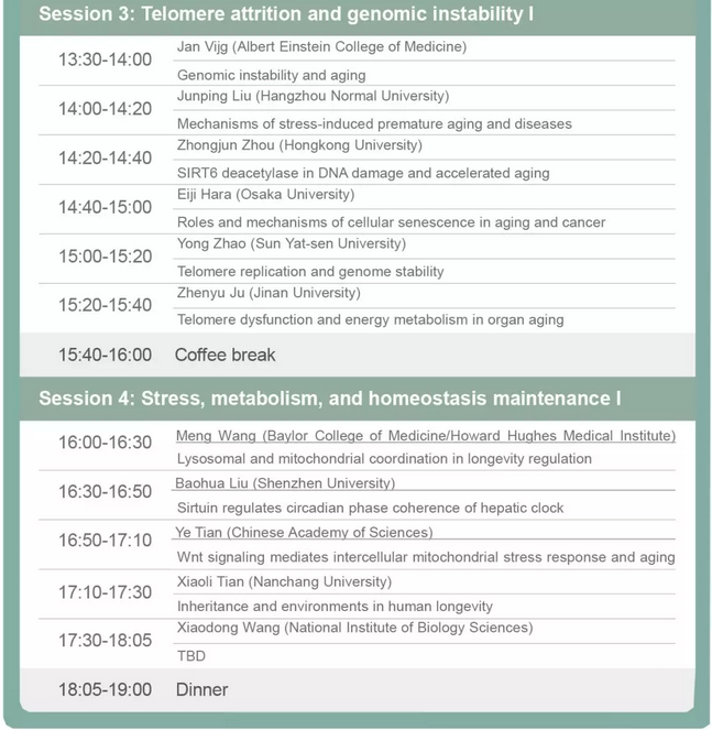 大會將邀請國際衰老研究相關(guān)領(lǐng)域的優(yōu)秀級科學(xué)家、專家學(xué)者及醫(yī)學(xué)工作者,圍繞“衰老的機制和干預(yù)”這一主題,針對“衰老機制”,“衰老與再生”,“代謝與衰老”,“衰老的遺傳和表觀遺傳機制”,“衰老的標記物”,“衰老及衰老相關(guān)疾病的干預(yù)”等科學(xué)問題進行廣泛深入研討,旨在推動科學(xué)應(yīng)對人口老齡化,合作研發(fā)防控過早老化及相關(guān)疾病的舉措。