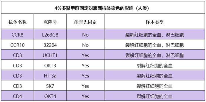在實際遇到預(yù)固定和指標(biāo)不兼容時,我們會做如下建議:(1)使用替代指標(biāo)來更換那些受固定影響的指標(biāo);(2)如果沒有可以替代指標(biāo),請根據(jù)實驗重要性原則來取舍檢測指標(biāo),比如是磷酸化的指標(biāo)會比表面的指標(biāo)更為重要。雖然這一段看起來有一點像“廢話”,但我們需要在實際實驗過程中學(xué)會做取舍和判斷。