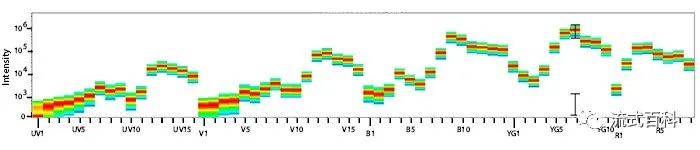 為了解決這個(gè)問題,光譜流式的技術(shù)在借鑒傳統(tǒng)流式技術(shù)的基礎(chǔ)上應(yīng)運(yùn)而生,通過分析每個(gè)熒光素的光譜特征區(qū)別不同的熒光素,即使發(fā)射波長相似的熒光素如APC和AF647,由于其波形不同,在光譜流式中也能很好的解析開,可消除傳統(tǒng)流式中熒光間補(bǔ)償?shù)睦_,另外通過對(duì)特異性光譜的分析可以方便的消除自發(fā)熒光信號(hào)的干擾。因此,光譜流式相對(duì)于傳統(tǒng)流式來說可以同時(shí)檢測(cè)更多的參數(shù),那么適配光譜流式的熒光素的開發(fā)是這項(xiàng)技術(shù)發(fā)展的核心。