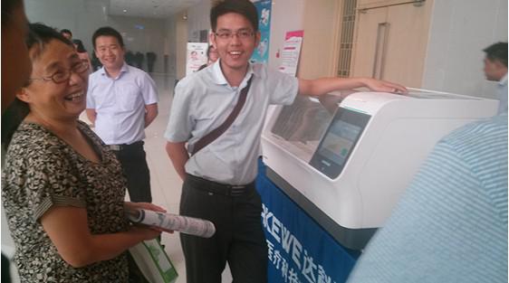 在公司領(lǐng)導(dǎo)的關(guān)注下,達科為Salus全自動染色機也得以提前面世,在此次年會上閃耀登場!其安全、智能、美觀、人性化的設(shè)計受到了與會專家們的稱贊!其“恒溫染色、智能算法、自動排廢氣、物聯(lián)網(wǎng)監(jiān)控、人性的圖形化界面”等功能與理念超越了市面上現(xiàn)有的染色機,獲得了外國病理專家的肯定和高度評價!
